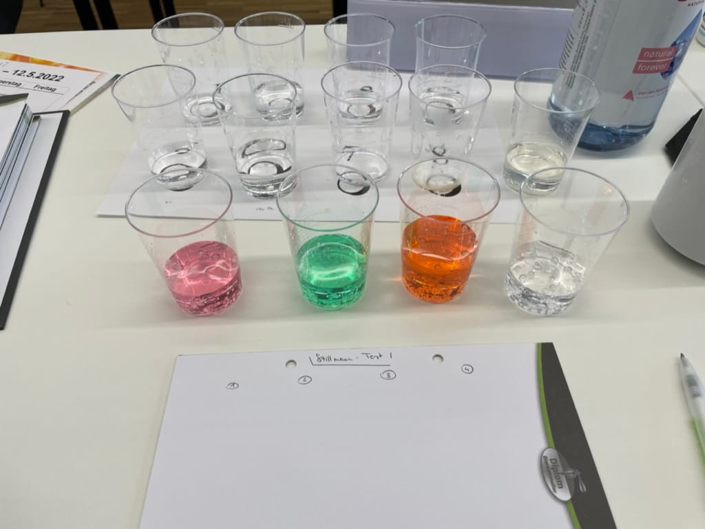 We were wrong because all four drinks were exactly the same beverage. We didn't know that our instructor had added food coloring to different batches of the same liquid.
