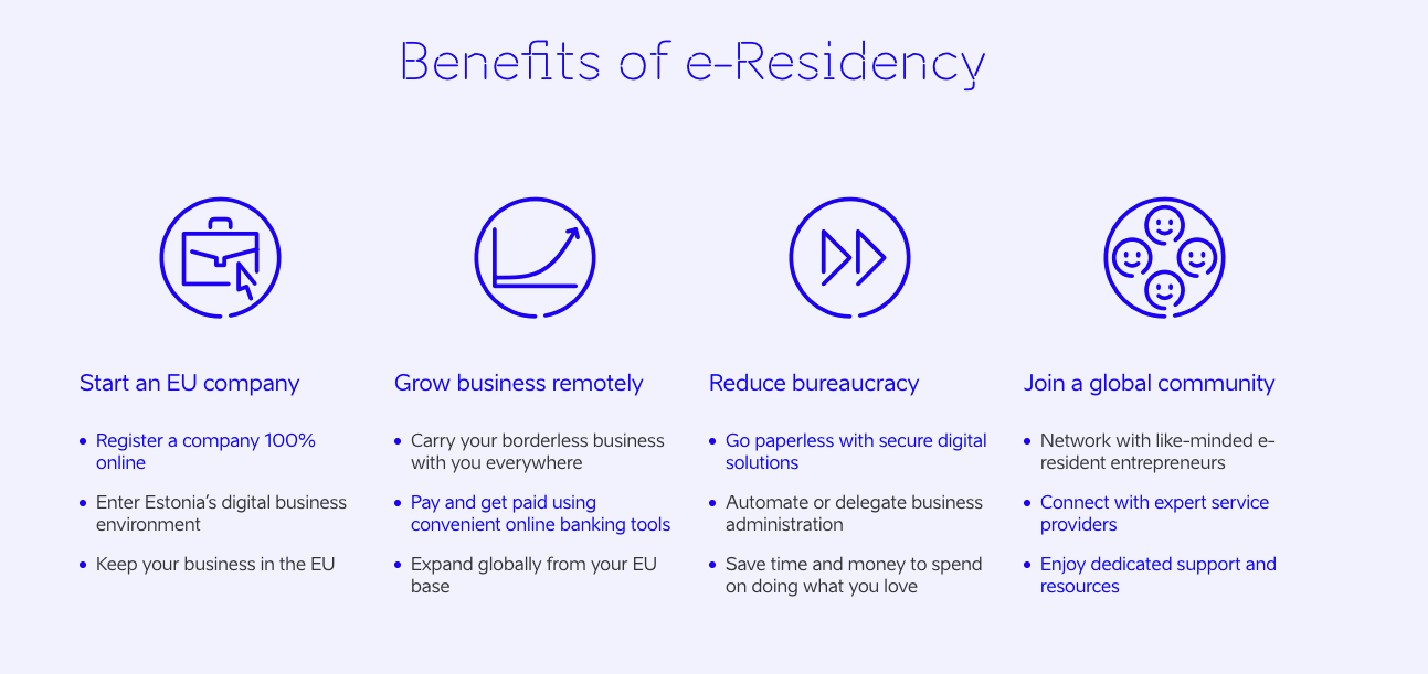 E-Residency is open to individuals from all countries, from Germany to Ukraine, Brazil to Spain. Most e-residents are entrepreneurs who work digitally, are location-independent and want to start and run an EU company.