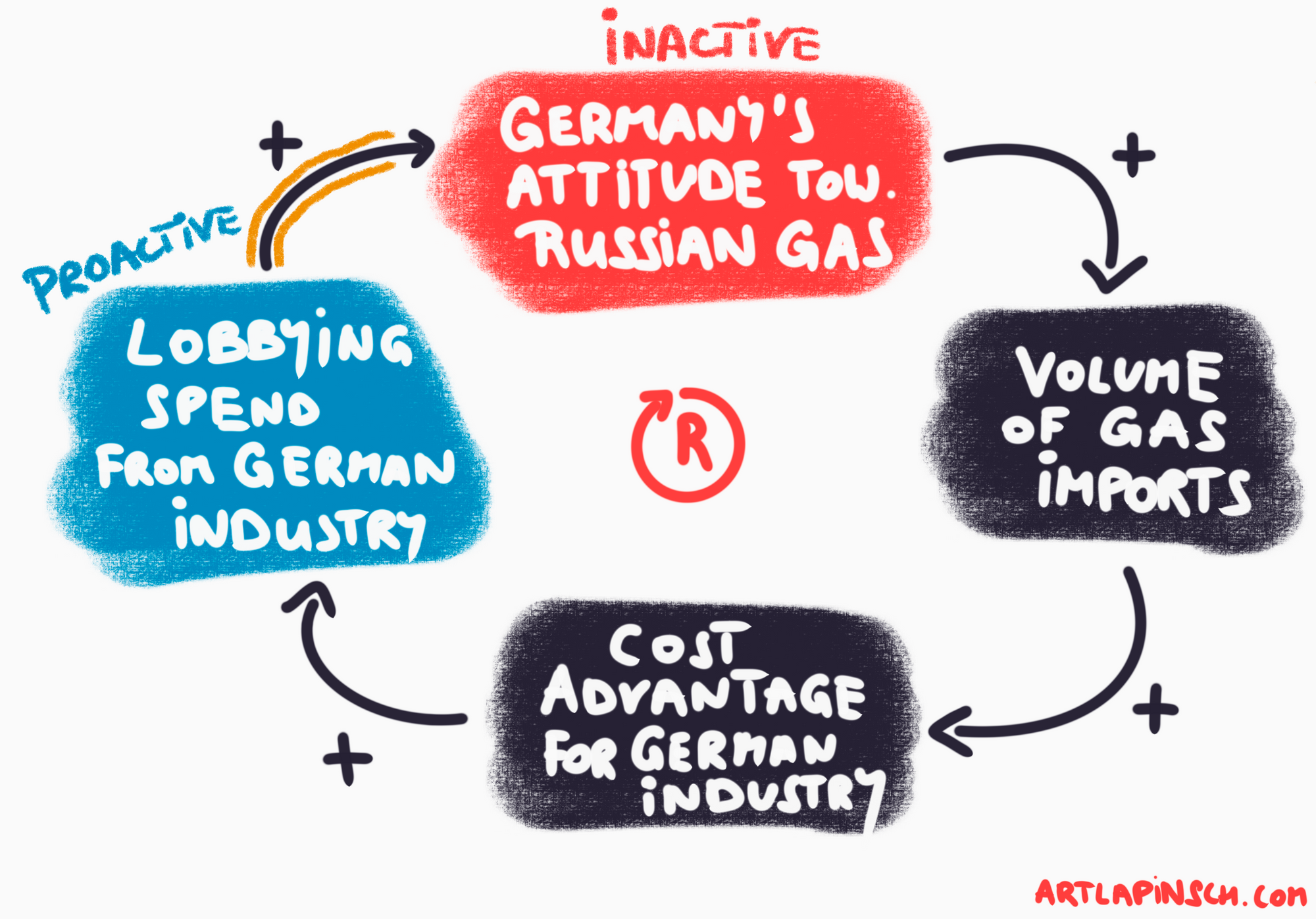 In the context of Germany's stance on Russian gas imports I can see the following causal flow loop happening: