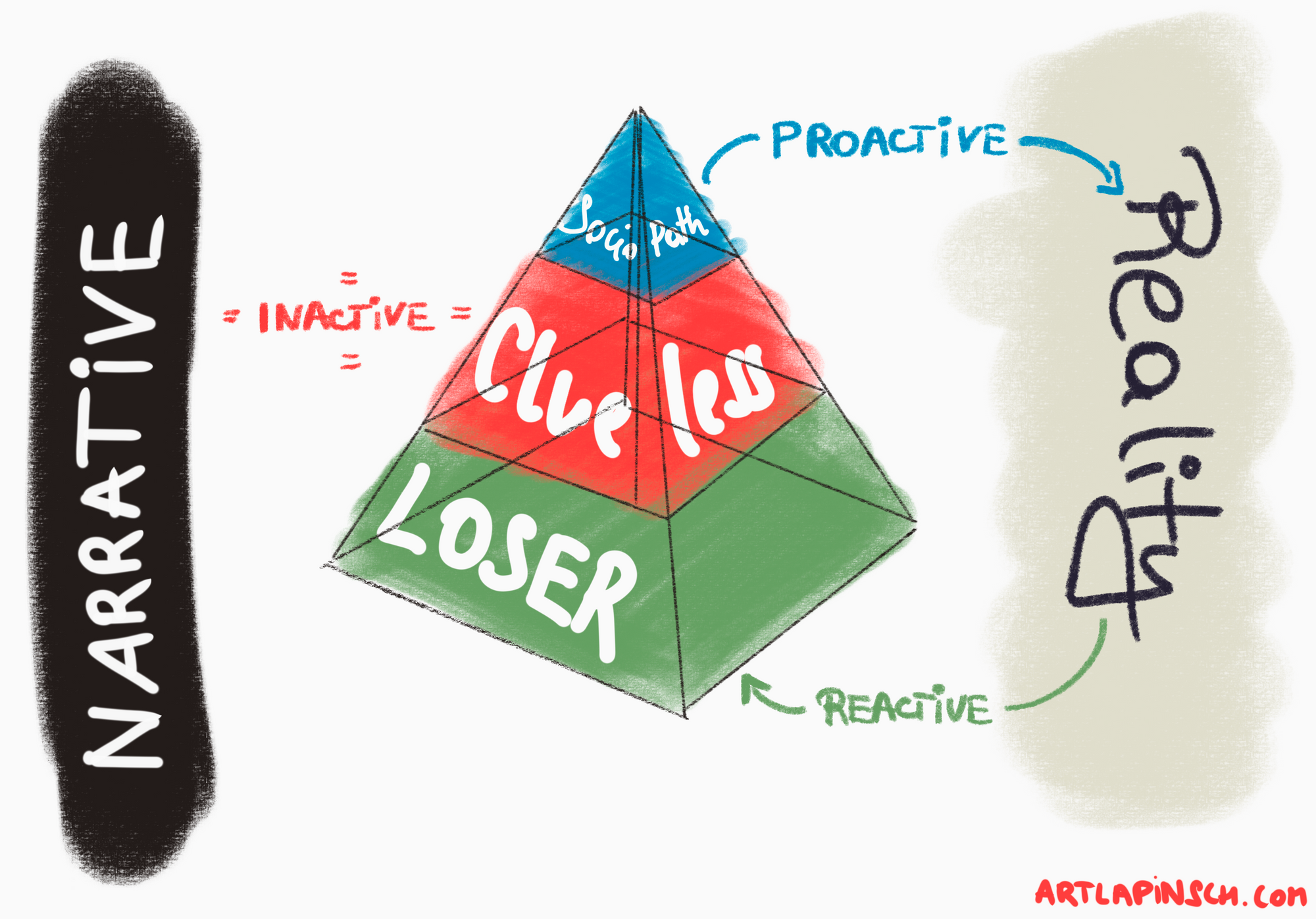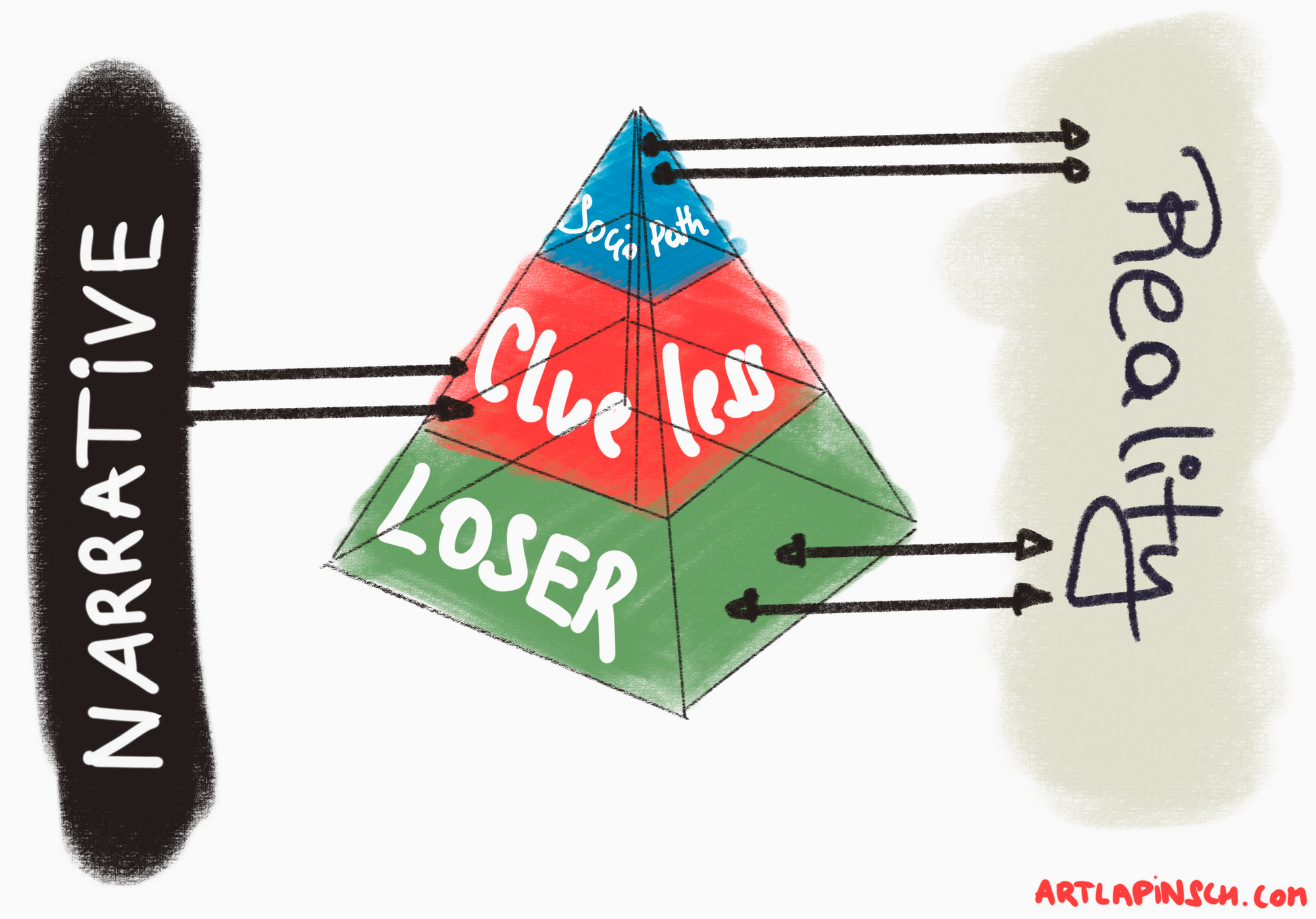 - The Clueless: People intermediating between Losers and Sociopaths — also known as “Middle Management”. Out of touch with reality, hence they need to come up with a story to make sense of why they are doing what they are doing.