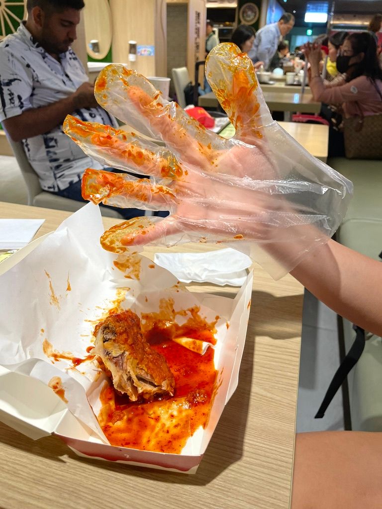 - Mala Chicken at McDonalds: Wow! Taiwanese cuisine features lots of dishes with the amazing Mala spice - the numbing cousin of the "hot spice." The crazy food designers at McDonald's said "fuck it! Let's go ham!" and created a Mala-glazed Fried Chicken that they serve you with a glove because it's so messy. But it's soooo good.