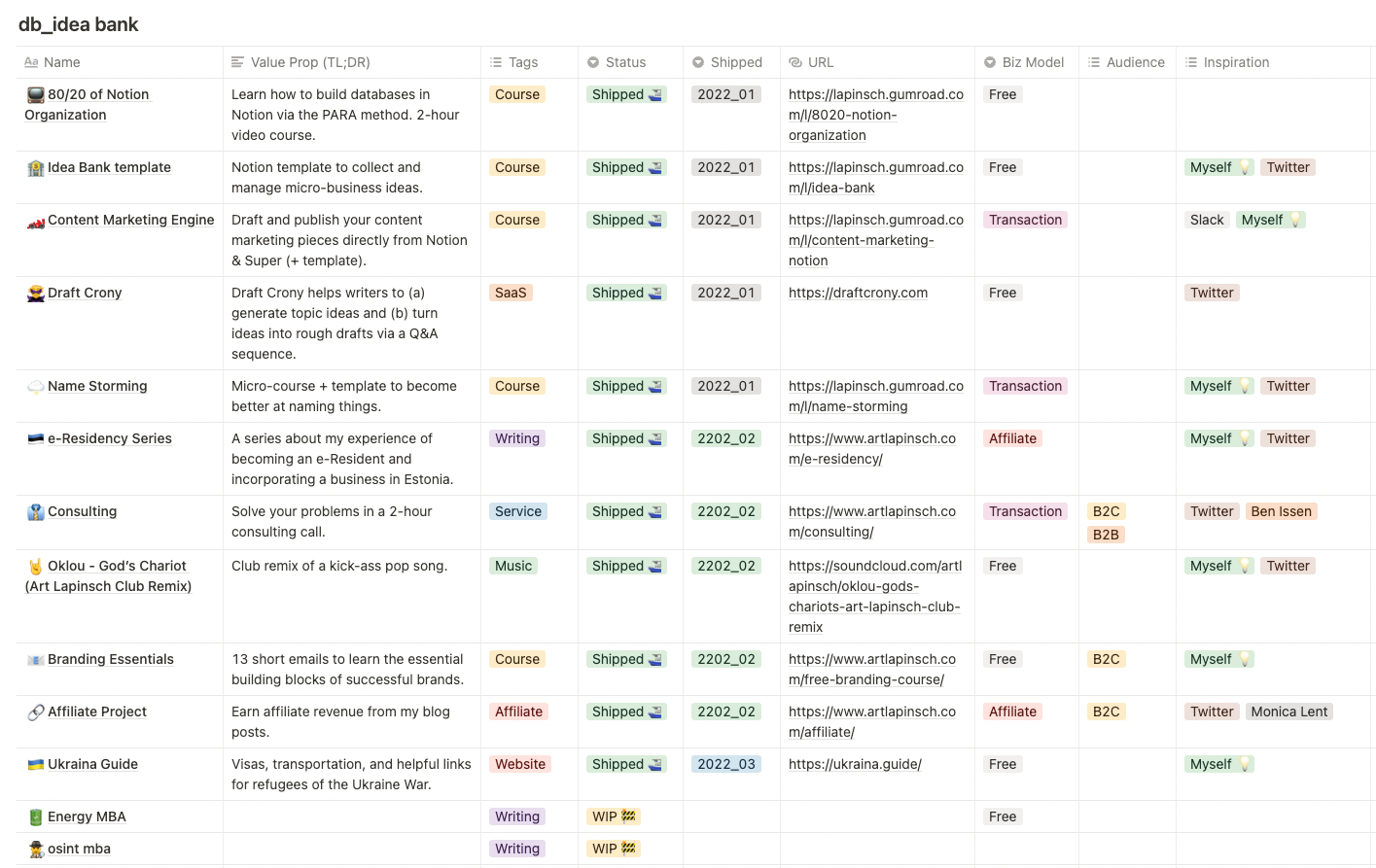 The idea: Create a Notion database with the following functions: